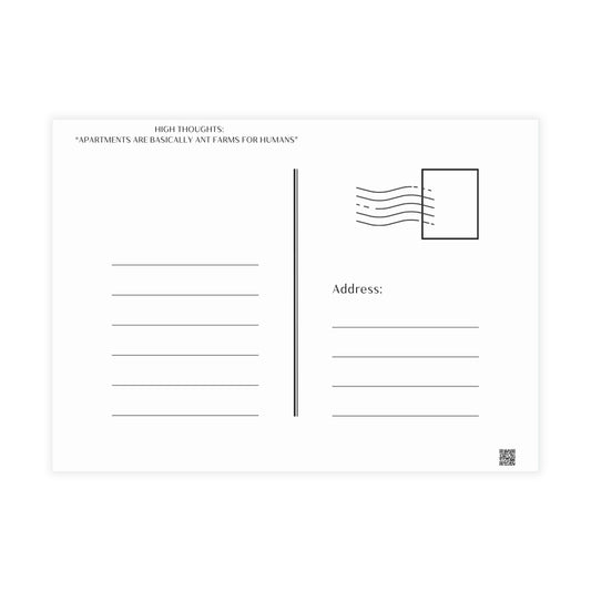 Postcard: "Apartments Are Basically Ant Farms for Humans" (bundles of 10, 30 or 50)